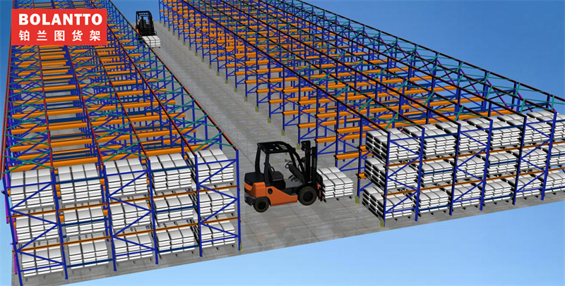 贯通式货架:是一种不以通道分割,连续性的整体性货架;贯通式货架采用托盘存取模式、适用于存放品种单一,大批量的货物;与托盘货架相比、仓库利用率可达到80%左右,仓库利用空间率可提高30%以上,是存储效率最高的货架。在支撑导轨上,托盘按深度方向存放,一个紧接着一个。投资成本相对比较低,适用于横向尺寸较大,品种较少,数量较多,常用来储存大批相同类型货物,由于其存储密度大对地面空间利用率较高,常用于冷库、食品、烟草等存储空间成本较高的仓库